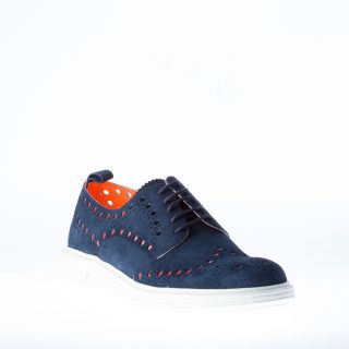 STRIKE FIRENZE scarpa in camoscio BLU con dettaglio brogue forato e suola light